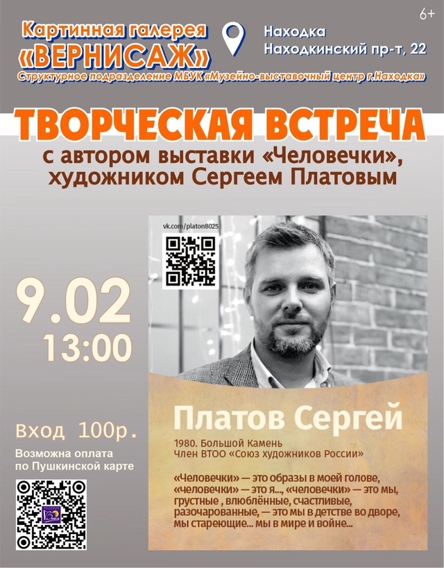 9 февраля (воскресенье) в 13.00 картинная галерея «Вернисаж» приглашает на творческую встречу с художником, автором выставки «Человечки» Сергеем Платовым.