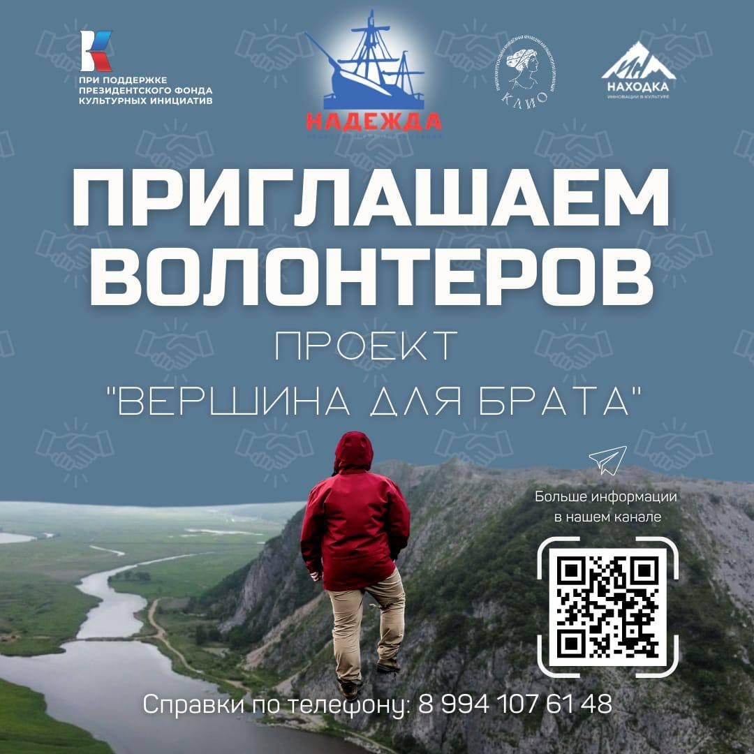 Проект «Вершина для Брата» Приморской краевой общественной организации содействия защите прав человека и культурного наследия "НАДЕЖДА" реализуется при поддержке Президентского фонда культурных инициатив.