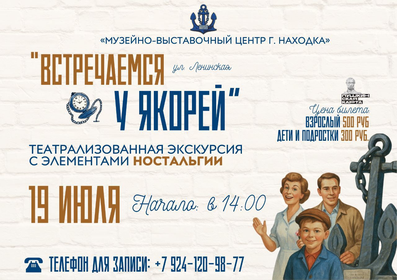 Детский билет и билет по Пушкинской карте доступны по ссылке: https://vmuzey.com/event/ekskursiya-spektakl-vstrechaemsya-u-yakorey