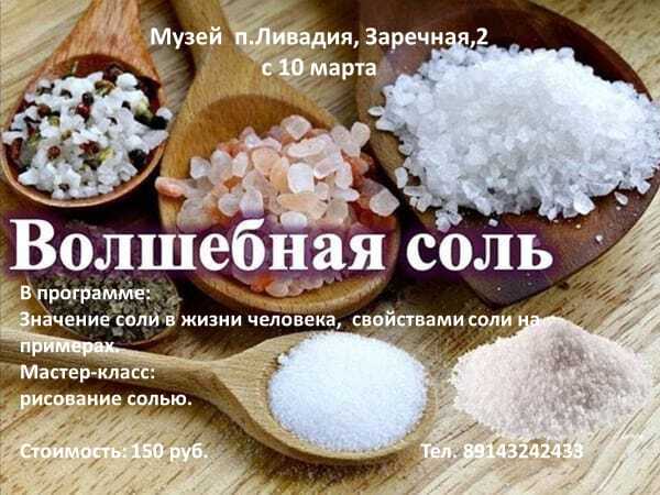 Музей п. Ливадия приглашает школьников начальных классов и дошкольников на программу "Волшебная соль" с 10 марта. Это уникальная возможность для юных исследователей окунуться в мир этого незаменимого минерала и узнать о его роли в истории и культуре.