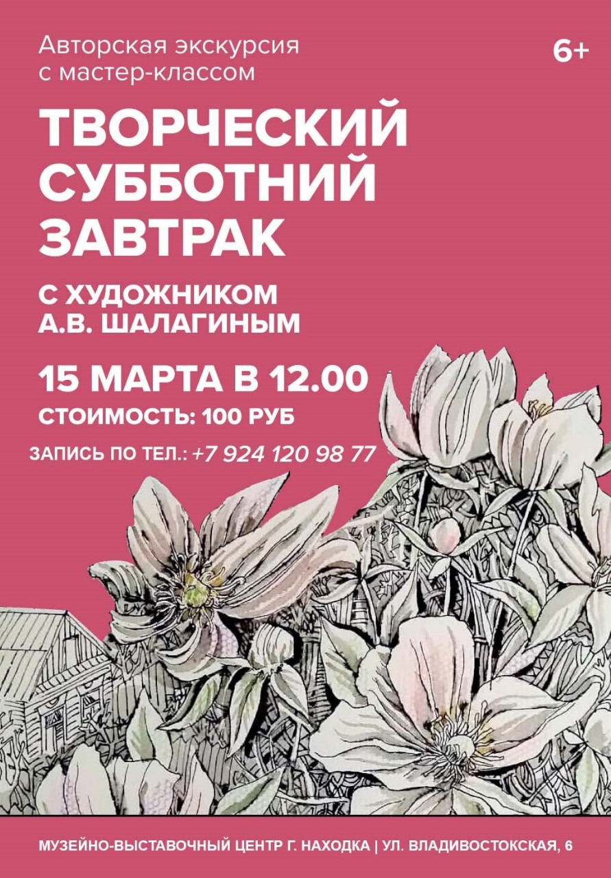 15 марта в 12:00 мы приглашаем вас на творческий завтрак с художником. За чаем и угощениями вместе с Александром Васильевичем поговорим о творчестве, вдохновении, посетим экскурсию по выставке «Весенняя встреча», которую проведет сам художник, а в конце нарисуем один из самых известных образов в творчестве Шалагина.